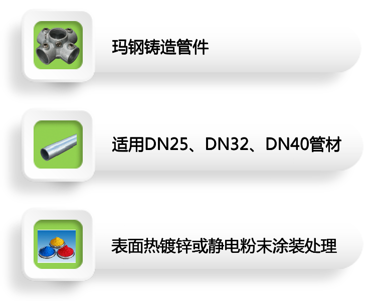 BG系列安全护栏由BGP系列管夹配件及国际管材组装而成。表面可进行热镀锌及热镀锌后静电喷塑处理,常用管材包括DN20、DN25、 DN32、DN40。广泛应用于工业厂房、平台、设备、柱、角的安全防护,楼顶防坠楼安全防护,化工设备安全防护,水处理设备及水池防护,商超安全防护等。